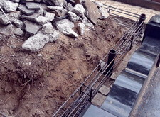 Клиент выразил желание всё бетонное на этом участке сломать и отстроить заново. Цоколь, равно как и фундамент, мы разобрали.