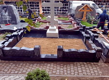 После того, как работа была проведена, клиент посчитал, что в задней части места захоронения требуется дополнительное укрепление. Мы вкрутили пять дополнительных свай, сварили новую сетку и залили ещё одну площадку, которая будет являться основанием для памятников.